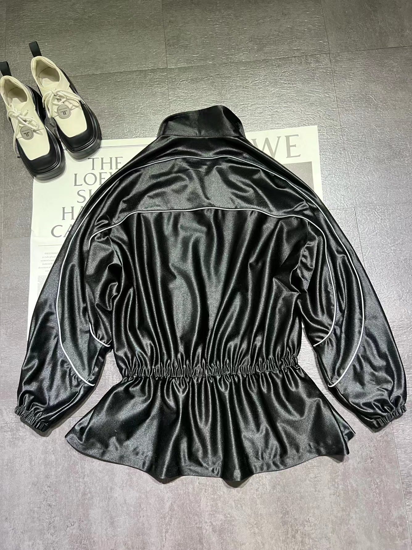 Women's Color-block fabric Bright trim Zippered dress Jacket #194224